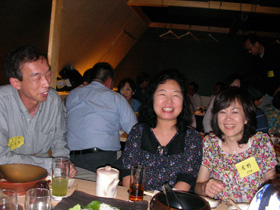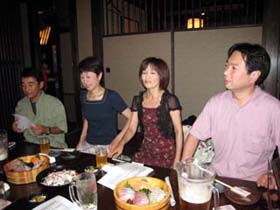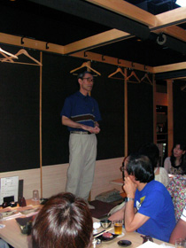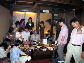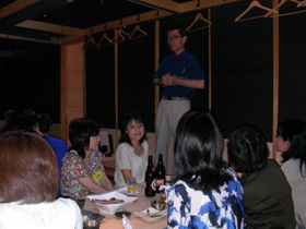 5月26日(土)に行われた19Rのクラス会について、幹事の時国武子さんより連絡がありました。(06/02 二次会の写真を追加しました) 一昨日、溝の口「一瑳」にて、19Rクラス会が行われました。 私達はあと2年で50歳を迎えようとしています。皆さんは、今年2月に出版された五木寛之氏の「林住期」をご存知でしょうか?古代インドでは人生を100年とすると、50歳から75歳を「林住期」と呼ぶそうで、五木氏はまさにこの時期が人生のクライマックスなのではないかと記しています。私達の家庭もそろそろ一段落。今こそ、自分自身に対面して、自分らしく、自分のために生きてみませんか? 末筆ながら幹事を引き受けてくださった川喜多君、福岡君、山本君、荻原さん、坂井さん、佐野さん、千葉さんに心から感謝申し上げます。 では、次の機会を夢みて。 2007年5月28日 19Rの皆様へ 一昨日はお疲れ様でした。 19Rのクラス会が5月26日(土)に行われます。幹事の時国武子さんよりクラス会の詳細について連絡がありました。 クラス会(一次会)について 一次会参加者は、「ほぼ出席」の人を含めて男性15名、女性15名となっています。多くの方に出席いただけることになり、幹事一同、喜んでおります。 二次会のお知らせ ■時 一次会終了後 二次会に関してはお店を公表しました。19Rの面々にお会いになりたい!?方々、どうぞ、クラスを超えてお出かけください。(現時点で3名さまが乱入予定) お願い どうしても、以下の方々の連絡先がわかりません。 足立 康さん、伊東幸次郎さん、北村久美子さん、佐々木千賀子さん、久武由美子さん、山本雅美さん ご存知の方は7期生HP「問い合わせ」欄からWeb担当の菅野さんまで、至急、ご連絡ください。よろしくお願いします。 幹事の時国武子さんよりクラス会の詳細について連絡がありました。 1月20日、19Rクラス会の幹事会があり、詳細が決まりました。 ■日時 5月26日(土) 18:30〜 2時間ぐらい 幹事8名が分担して皆様に出欠の確認をさせていただきます(電話、メール、ハガキなどで)。たくさんのご参加をお待ちしております。昨年の同期会に来られなかった方は是非!関口先生を囲んで、32年前のあれやこれやで大いに盛り上がりましょう! 同窓会・代表幹事、手嶋より、19Rの住所等の情報を時国武子さん(申込人)へ提供しました。 19Rのクラス会について、名簿の提供に関する申込みがありました。 ■幹事 ■概要・予定