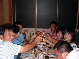 「12月2日(土)、町田にて37Rのクラス会を開催致しました。当日の参加メンバーは関口先生を含め男性7名、女性6名の13名でした。参加人数はやや少なかったですが、関口先生を囲んで和気あいあいと楽しい時間を過ごす事が出来ました。関口先生は、あの当時と少しも変わりなく!?誰よりもお元気でしたよ!(^-^)。高校生の頃の懐かしい話や現在の近況など、笑いが絶えない楽しい会でした。皆さん、よく飲んでよく食べました〜。V(^0^)先生が一番飲んでいたような・・・・・今回、出席したくても、仕事や用事等で出席できなかった方、また集まろう!!次回37Rのクラス会は2007年の夏に決まりました!次回はもう少し早めに連絡をしたいと思います。夏の再会を楽しみにしています」