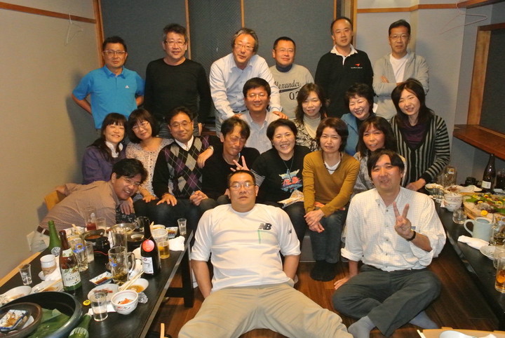 11月29日に、4年ぶりの18ルームのクラス会を溝ノ口で行いました。益田(肥本)先生を含めて14名の参加でした。私は幹事代表として開会挨拶をして以降はひたすら先生の隣で飲んでいました。途中から記憶がなかったのですが、翌日幹事にメールで様子を聞くと、カラオケで2曲歌った後、ダウンし、松井君と水谷君に介抱されていたそうでした。情けない限りです。確か高校時代は、私が一番酒が強かったような気がするのですが。みなさん、また2年後の同期会で会いましょう。なお、当日の様子は、後日金子君がアップしてくれる予定です。